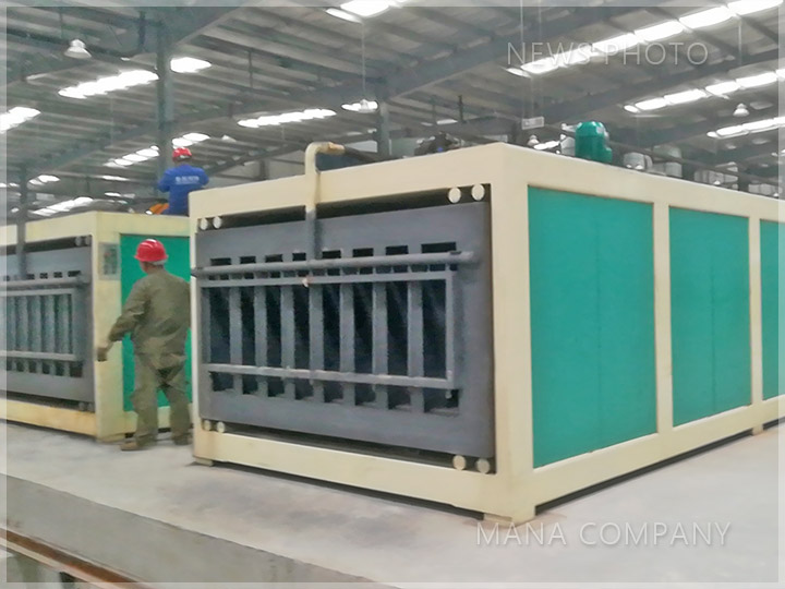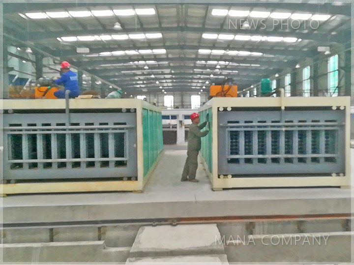 客戶現(xiàn)場-發(fā)泡水泥墻板生產線-注漿完成的成組立模成型機